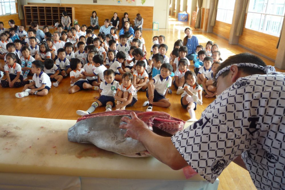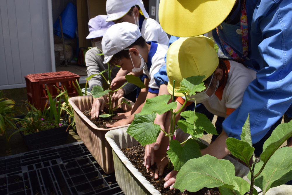 当園で野菜を育てたり、お芋掘りに出掛けたり、食品工場の見学やまぐろ解体ショーを見たり、また、学年毎にクッキングをしたりして、観察・収穫・料理することの楽しさや喜び、食に対する興味・関心を高揚させます。