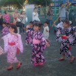 子どもたちは色とりどりの浴衣を着て、練習した踊りを、お父さん、お母さんに披露できました。