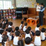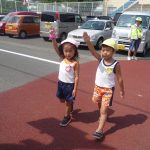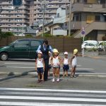 9月5日(水)は幼稚園に婦警さんがきたよ。横断歩道では「右見て、左見て、もう一度右見て」安全を確認。教わった交通ルールを忘れずに守るよ!!