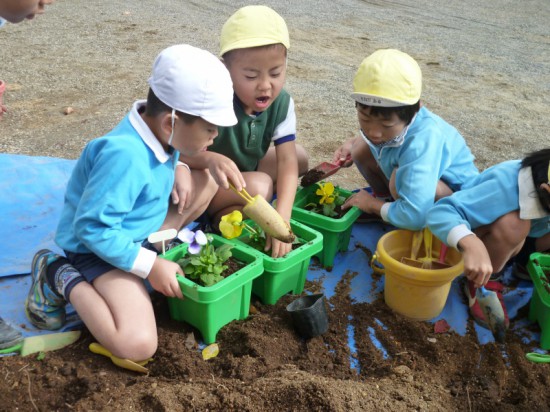 パンジーを植えたよ ♪♪ 2012年11月16日 年長 11月13日(火)に年長さんがパンジーを植えました。 自分の鉢に、お気に入りの色を選んでからそれぞれ植えていきました。 毎朝、登園してから忘れずにしかっりと水をあげています。 みんなの卒園式で飾るので、それまで大事に育てていきたいです