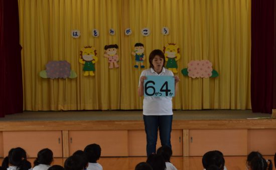 虫歯予防集会!! 2018年06月08日 共通 6月4日は「むし」の日ということに因んで、みなと幼稚園で「虫歯予防集会」を行いました 集会では虫歯にならないように気を付けることなど、お話を聞いたり、先日行った歯科検診で虫歯が0だったお友だちが、きれいな歯をみんなに披露してくれました。 最後に先生たちの劇を見て、しっかりと歯みがきしないと虫歯になってしまうことや、歯みがきの仕方をみんな一緒に練習しました。 丈夫な歯になるように毎日忘れずに歯をみがこうね。