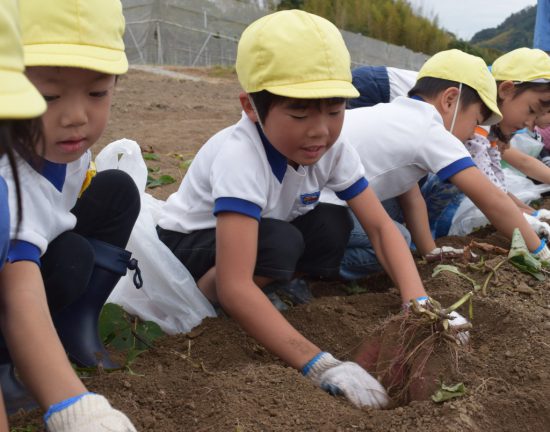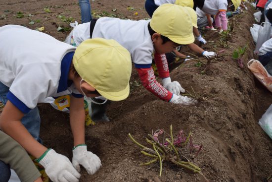 1学期には「じゃがいも掘り」でたくさん「じゃがいも」をとることが出来た年長さん。2学期は「さつまいも掘り」に挑戦します。![]()