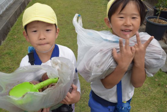 バスまで「さつまいも」を運ぶのが大変なくらい袋いっぱいになっている子もいました。頑張ってとった「さつまいも」お家で美味しく食べてね。![]()