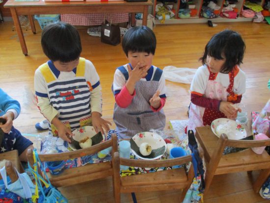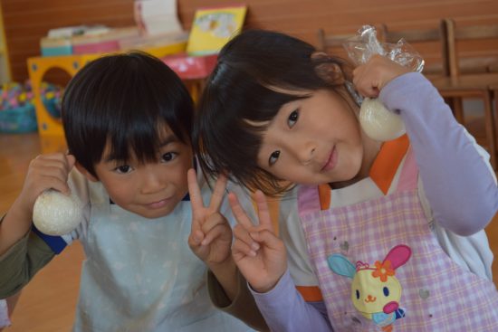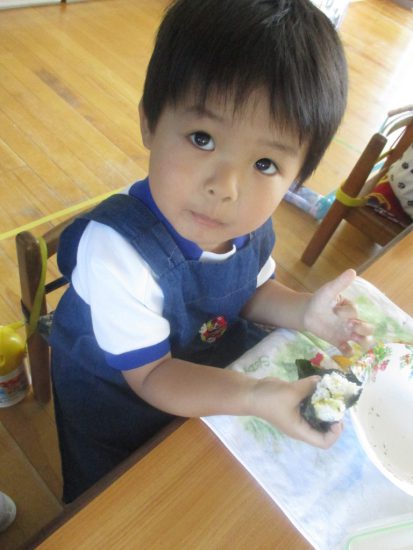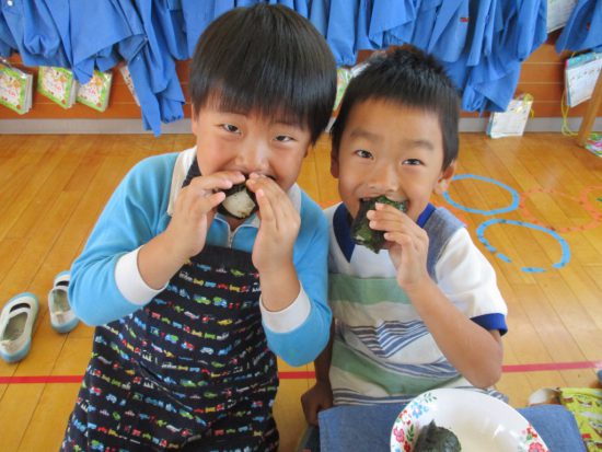 おいしい「おむすび」つくったよ!! 2018年11月04日 共通 年長さんが6月に田植えを行い、先月稲刈りをしてできたお米を使って「おむすびパーティー」を行いました。 年長さんだけでなく、はな組さん、年少さん、年中さん、みんな同じお米で「おむすび」をつくりました。 自分たちで握ってできた「おむすび」はとても美味しかったようで、「すごいおいしかった~」「たくさんつくってたべたよ~」など、あっという間に食べてしまった様子でした 美味しいお米でつくった「おむすび」にみんな大満足。 年長さん、美味しいお米をごちそうさまでした。