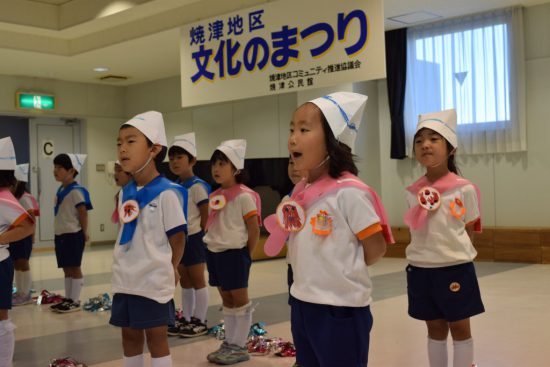「♫文化のまつり♬」 2018年11月19日 その他 17日(土)に「文化のまつり」(焼津公民館祭り)が行われ、みなと幼稚園から年中さんが参加しました お客さんの前で歌や遊戯を披露しました。 たくさんのお客さんの前で、少し緊張している様子の子もいましたが、大きな声で歌えている子も多く、遊戯でも一生懸命に踊ってくれました。 「文化のまつり」にご参加、ご協力いただきました保護者の皆様、ありがとうございました。