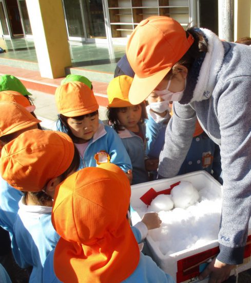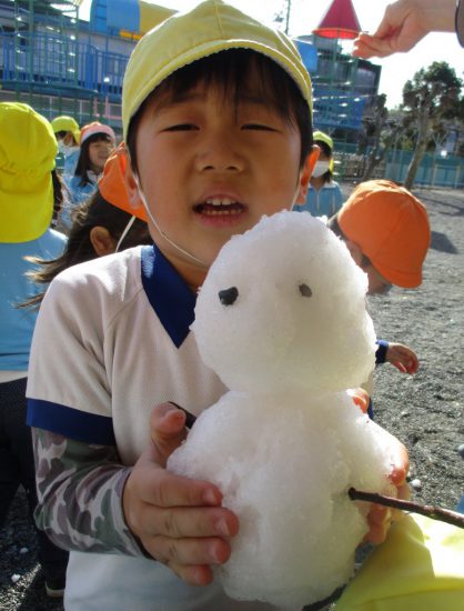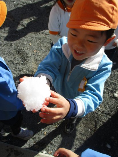 雪あそびをしたよ!! 2019年01月24日 共通 昨日、年長さんが「雪見遠足」に行ってきました。 年長さんたちはお父さんやお母さん、先生とたくさんソリすべりをして大満足の様子でした 年長さんから、はな組さん、年少さん、年中さんに雪のプレゼントがありました。 たくさんの雪を見て、触ってみんな大興奮。中には年長さんがつくってくれた雪だるまも入っていて、興味津々の様子でした。 友だちや先生と雪合戦をしたりと雪あそびを満喫できました。