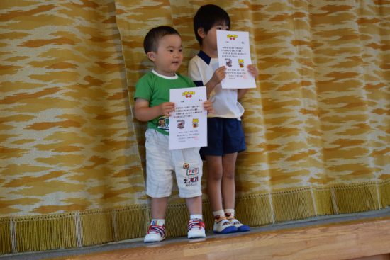 虫歯予防集会!! 2019年06月07日 共通 6月4日、むしの日にちなんでみなと幼稚園で「虫歯予防集会」を行いました 先生から虫歯などについてお話を聞いた後は、先月行った歯科検診で虫歯0の子と歯医者さんで虫歯を治療してある子にクラスごと先生から賞状をもらいました。 これから歯医者さんで虫歯を治してもらった子も賞状がもらえるよ。 最後は先生たちの劇を見て、みんなで歯のみがき方を練習しました。 虫歯0のきれいな歯になるように毎日忘れずに歯みがきをしようね