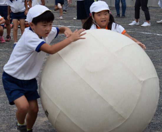 大玉ころがしでは全学年でチームごと分かれ、はな組さんや年少さんも最後まで大玉をころがしていました。![]()