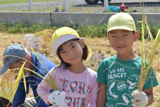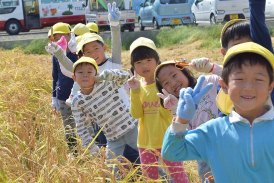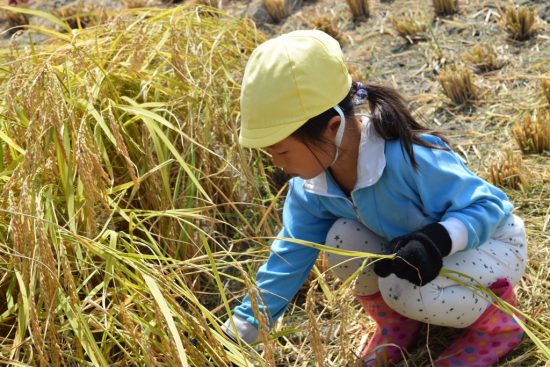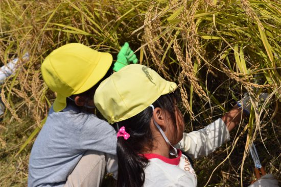 稲刈りをしたよ!! 2019年10月04日 年長 1学期に年長さんが行った田植え とても大きな稲に成長しました。 いよいよ今日は稲刈りを行います 稲を自分たちで切っていきます。みんなでたくさんの稲を切ることが出来ました。 大きなコンバインも見ることができ、とても貴重な稲作体験ができました。 後日、収穫したお米をつかっておむすびをつくります。はな組さん、年少さん、年中さんもおいしいおむすび楽しみにしていてね。