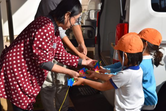 折鶴プレゼント 2019年11月22日 共通 今年も勤労感謝の日が近づいてきました。 みなと幼稚園では毎年地域の働く人たちに折鶴をプレゼントしています 学年ごとに分かれて郵便局や駅などに行き、折鶴を渡してきました 子どもたちは「いつもはたらいてくれてありがとうございます」と大きな声で感謝の気持ちを伝えることが出来ました お店の人から仕事について教えてもらったりと、日頃からいろいろな場所で働いてくれている人たちについても学ぶことが出来ました。 保護者の皆様、折鶴のご協力ありがとうございました。