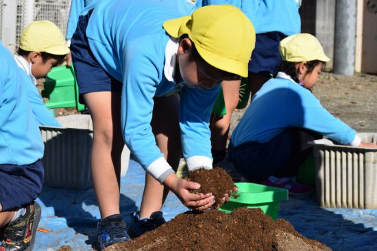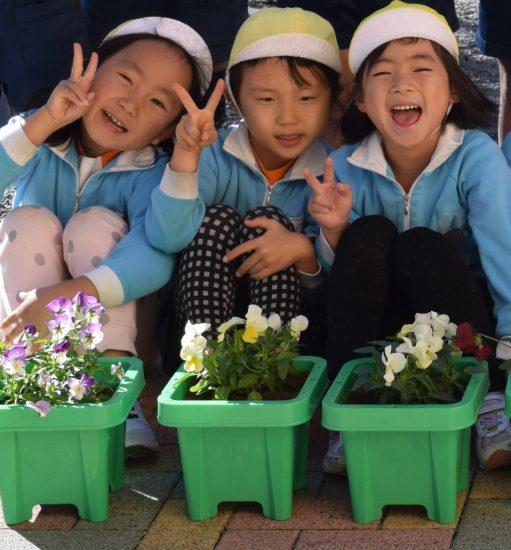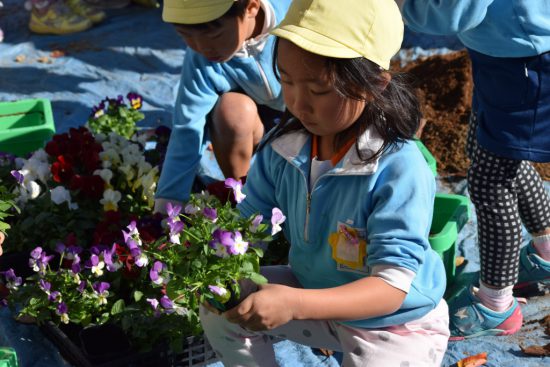 パンジーを植えたよ♪♪ 2019年12月07日 年長 年長さんは夏に自分の鉢に「ひまわり」の種を植え育てました。「ひまわり」の次はパンジーを育てます 自分で鉢に赤玉、土を入れ好きなパンジーを選んで行きます。みんな「ひまわり」を育てたことがあるのでパンジーも上手に植えることが出来ました。 毎日水かけを忘れずに、綺麗な花がもっと咲くように育てていこうね。
