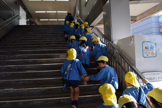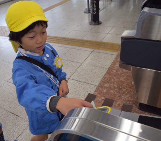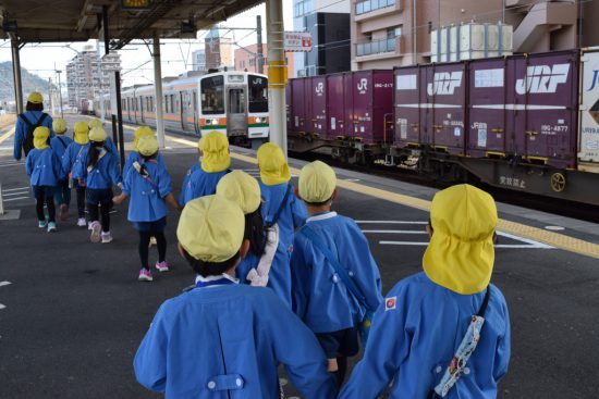 焼津駅から自分で切符を持って改札口を通ります。みんな少し緊張気味で慎重に切符を入れていました。![]()