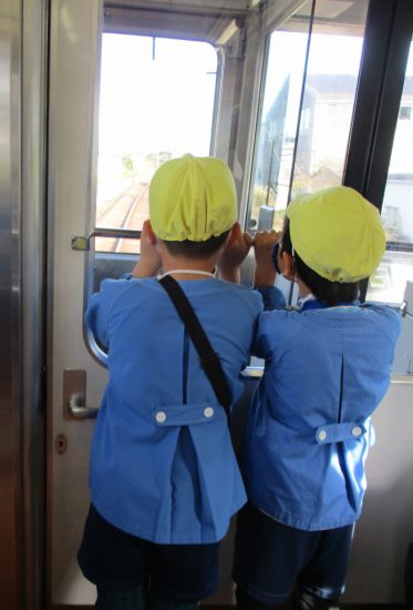 では先頭車両に乗って一番前の窓から景色を見ることが出来、興味津々に見入っていました![]()
