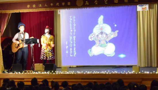 みなと幼稚園、みやじま幼稚園、新入園児のお友だち、みんなで一緒になって楽しみました。