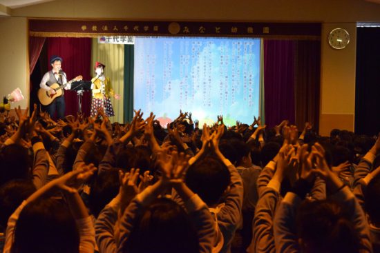「ケチャップマヨネーズ?」さんによるコンサートでは、動く大きな絵を見ながらみんなが知っている歌や、オリジナルの歌を届けてくれたり、みんなが大好きな「パプリカ」を歌って踊ったりと、とても盛り上がりました。