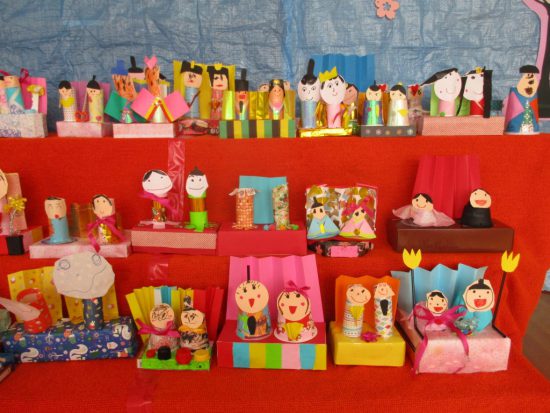 親子制作では「おひなさま」づくりを行い、協力してかわいいおひなさまが完成していました。