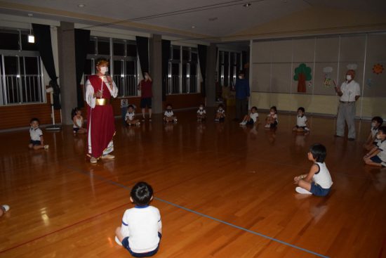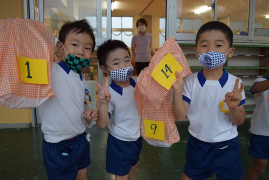 今年度の年長児の行事「お泊り保育」はコロナウイルス感染予防のため、幼稚園には泊まらず「夏の夜の思い出づくり」として時間を短縮して夕方から行いました。