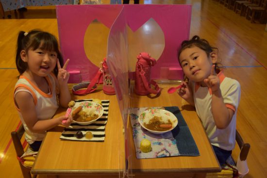夕食ではカレーを先生たちと一緒に食べ、中にはあっという間に食べてしまい、おかわりをする子も