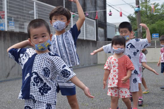 盆踊りでは園長先生が叩く太鼓に合わせて元気よく踊っていました。
