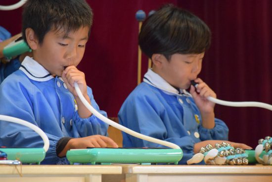 ひかり組(年中児)、ほし組(年長児)のオペレッタや劇では、とても上手に歌や自分のセリフ(年長児)を大きな声で言ったり、合奏でも素晴らしい演奏を響かせていました。