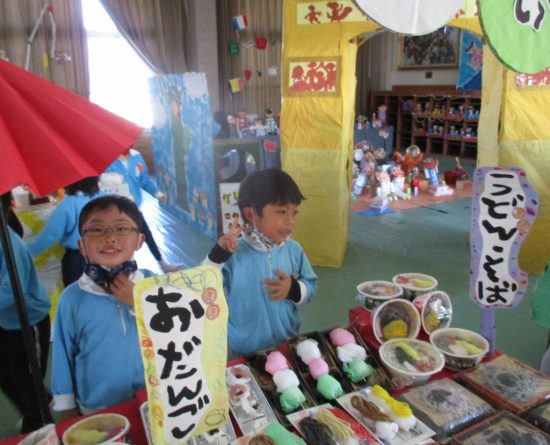 ☆絵と制作展見学会☆ 2021年02月27日 共通 先日みなと幼稚園で「絵と制作展」がありましたが、姉妹園のみやじま幼稚園でも同じ日に「絵と制作展」が行われました今日はみなと幼稚園のみんながみやじま幼稚園の制作展見学に行ってきました。 みやじま幼稚園は今年度「お店屋さん」をテーマにしているため、ホールにたくさんのお店が並んでいて、みんな興味津々で売り物や作品を見ていました。 中には神社もあったりとしっかりとお参りしている子もいました 来年度はみなと幼稚園が「お店屋さん」をテーマにするため、来年もみんなで楽しんで制作に取り組んでほしいです。