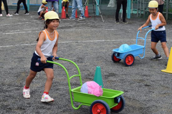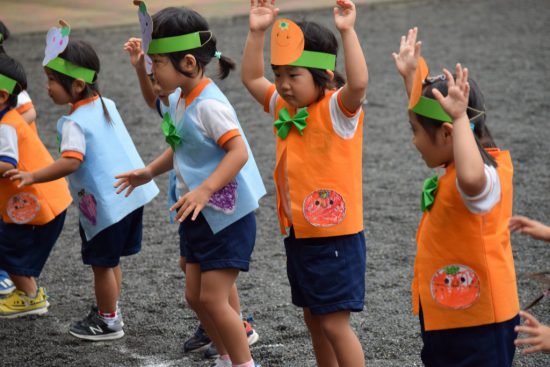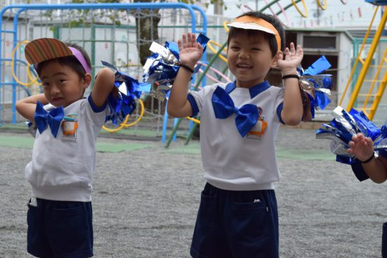 年中さんでは朝早い時間帯での競技となりましたが、遊戯の「勇気100%」では元気いっぱいに踊ることができました。![]()