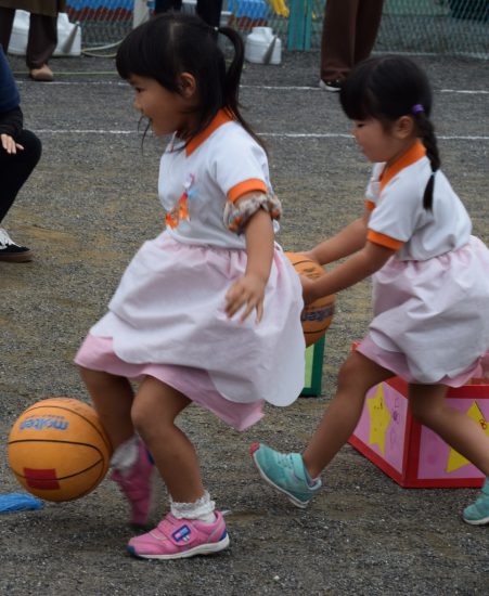 年少さん、はな組さん(満3歳児)は初めての運動会で、少し緊張気味の子もいましたが、観覧に来ていただいたお父さん、お母さんに一生懸命踊ったり、走る姿を披露できました。![]()