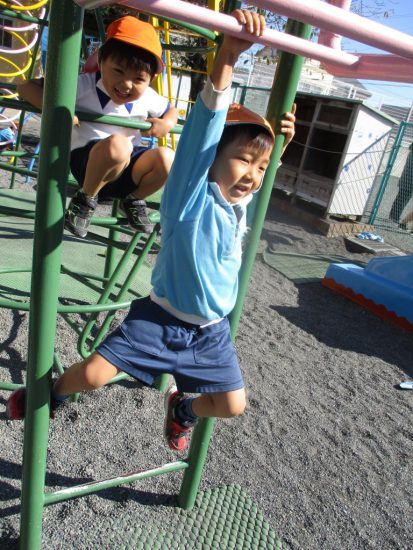 たくさん運動しよう!! 2021年11月06日 共通 朝は肌寒い日が増えてきましたが毎日子どもたちは元気いっぱいです。 年少さんから年長さんまで運動あそびを頑張っています。 園庭にある太鼓橋やチェーンネット、鉄棒、雲梯、縄跳びなど学年にあった運動あそびを一生懸命取り組み、「うんていさいごまでできるよ」と教えてくれる子もいました。 たくさん身体を動かして、友だちや先生と楽しくあそぼうね