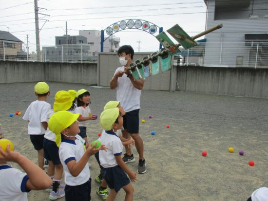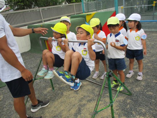 ★体育レッスン☆ 2022年05月27日 共通 今年度はじめての体育レッスン(年中さん・年長さん) テルトマン先生から鉄棒やボールの投げ方など教えてもらい、友だちと一緒にたくさん運動あそびを行っていました。 みんなとても楽しみながら体育レッスンに取り組み、年長さんではドッジボールでみんな一生懸命にボールを投げていました。 次回の体育レッスンも元気いっぱいに頑張ってほしいです。