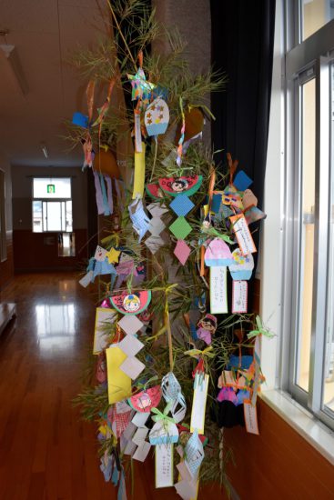 各クラスの子に短冊に書いたお願い事を聞いたり、みんなで「たなばたさま」を歌ったりと7月7日の七夕、織姫様や彦星様について楽しみながら学ぶことができました。![]()