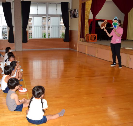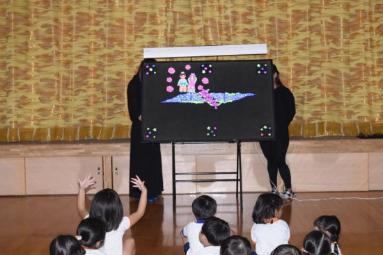 先生のお話を聞いた後には「絵本の会」のお母さんたちが七夕について「ブラックシアター」を披露してくれました。![]()