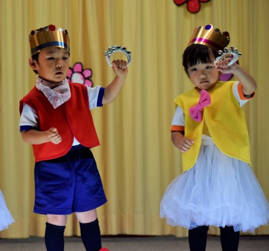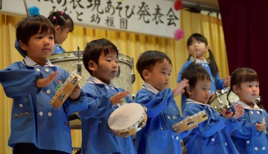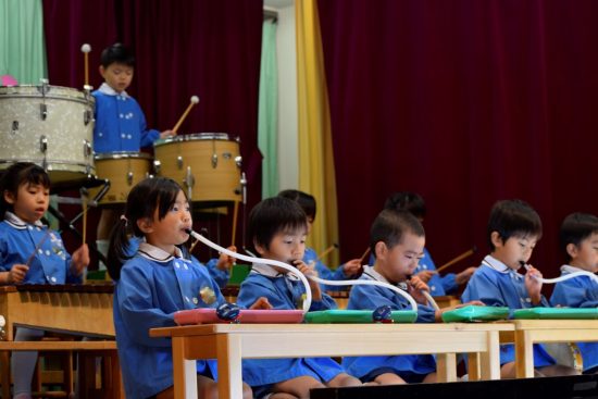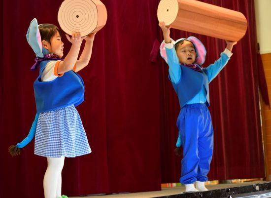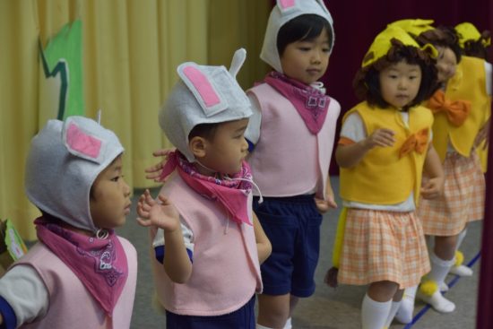 年中組はオペレッタ「がんばれねずみのおてつだい」、年長組は劇あそび「ブレーメンのおんがくたい」を発表 ![]()