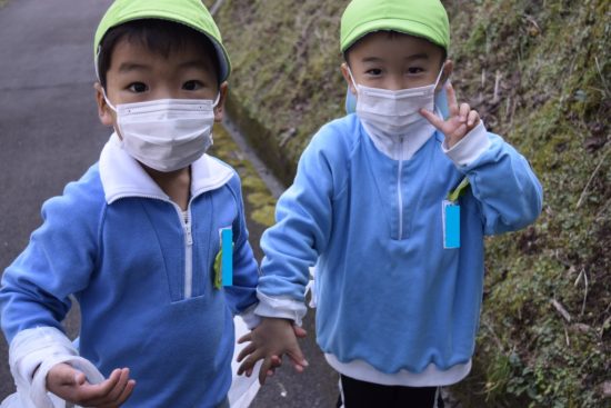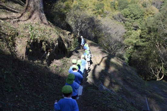 ★蓮華寺池公園に行ったよ★ 2022年12月09日 年少 ことり組さん(年少組)とはな組さん(満3歳児クラス)がバスに乗って「蓮華寺池公園」に行ってきました ことり組さんは公園から続いている山道を歩きます。道の途中にはどんぐりや木の実などが落ちていて、「どんぐりあった~」と大喜びでたくさん拾って袋にいれていました。 山道では幅が狭い場所などもありましたが、最後まで自分で歩くことができました。 久しぶりの園外保育でたくさん体を動かして、みんな大満足の様子でした。