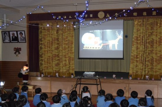クリスマス会では、園長先生や絵本の会のお母さんたちがクリスマスの絵本を読んでくれたり、先生たちと楽しい手あそびやマジックを見せてもらったりと、盛りだくさん。![]()