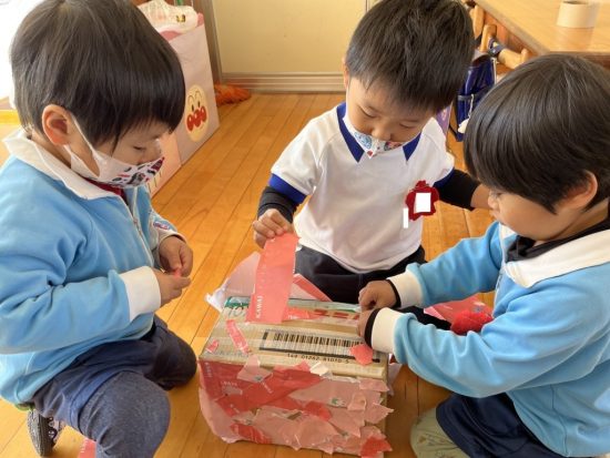 ☆「絵と制作展」に向けて☆ 2023年02月09日 共通 来週土曜日(2月18日)にみなと幼稚園「絵と制作展」を行います 子どもたちは絵画や制作に一生懸命取り組んでいます。 今年度は「動物園」をテーマにホールに各学年ごと動物などを制作しています。 各クラスには1学期~3学期の絵画3枚の展示を行います 「絵と制作展」ではみんなの作品を楽しみにしていてください。 ご家庭での廃材集めにご協力いただきありがとうございました。