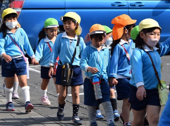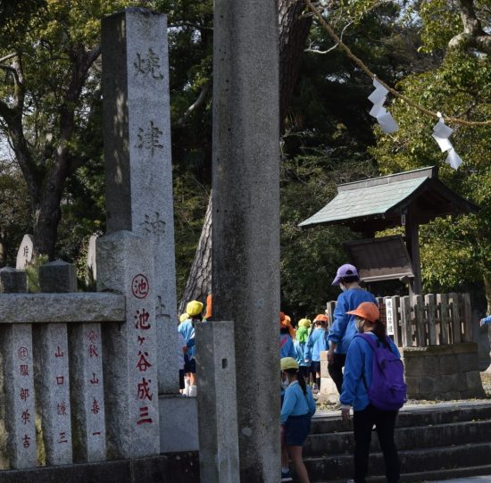 お別れ遠足!! 2023年03月08日 共通 今年度の幼稚園登園日もあと8日間となり、はな組さん、年少さん、年中さんは進級、年長さんは卒園が近づいてきました とても暖かく晴天となった今日は全学年で焼津神社に「お別れ遠足」に行ってきました 年少さんから年長さんは焼津神社まで歩いていきます。 年少さんも年長のお兄さん、お姉さんと一緒に最後まで歩くことができました。 焼津神社では「宝さがし」をグループごとに行い、協力して見つけることができました。 年長さんは卒園まであと少しですが、幼稚園で友だちや先生たちとたくさんあそぼうね