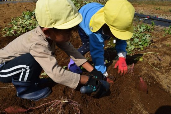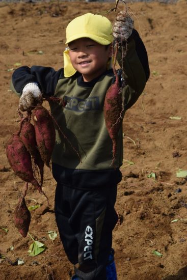 みんな一生懸命たくさんの土を掘っていくとすぐに大きな「さつまいも」を発見![]()