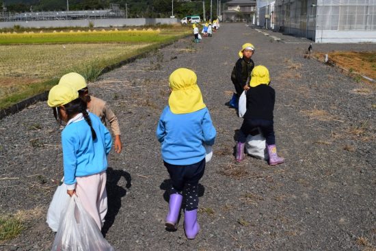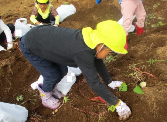 あっという間に袋の中が「さつまいも」でいっぱいになっている子も多く、帰りには、「さつまいも」でいっぱいになった袋をバスまで頑張って運んでいました。![]()
