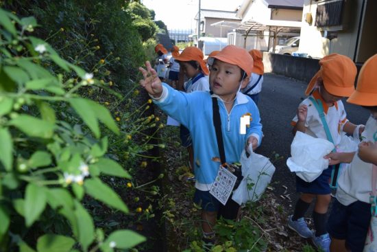 やきつべの小径に行ったよ!! 2023年11月02日 年中 年中さんが園外保育でバスに乗って「やきつべの小径」に行き、山の中の道をみんなで歩いてきました。 途中にはいろいろなお花が咲いていたり、道に落ちている木の実や葉っぱなど、夢中になって見つけ、たくさん袋に入れていました。 秋の自然にみんな興味津々の様子で園外保育を満喫してきました