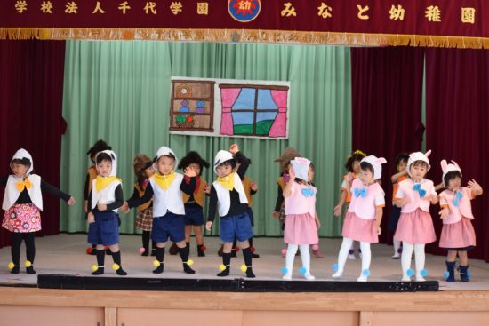 ♬第69回「みなと幼稚園発表会」♬ 2023年12月02日 共通 第69回「みなと幼稚園・リズムとことばの表現あそび発表会」を行いました。 子どもたちは、劇や合奏の練習に一生懸命取り組み、発表会では、ご家族の皆様に練習の成果を披露することができました 発表前は少し緊張気味の子もいましたが、ステージでは大きな声で歌い、合奏でも素晴らしい演奏を響かせてくれました。 ご家族の皆様、子どもたちにたくさんの拍手をありがとうございました。