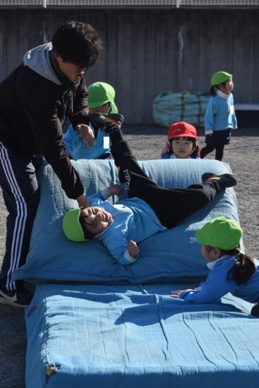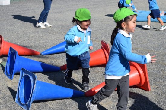 ♬体育レッスン♪ 2024年01月29日 年少 はな組さん(満3歳児クラス)と年少さんが「体育レッスン」を行いました いつもは年中さん、年長さんのお兄さん、お姉さんたちが行っていましたが、今回は「はな組さん」と「年少さん」の番です。 テルトマン先生と一緒に「体育レッスン」のスタート。 みんなで走ったり、ボールを投げたり、転がったり、ジャンプしたりと運動あそびを楽しんでいました。