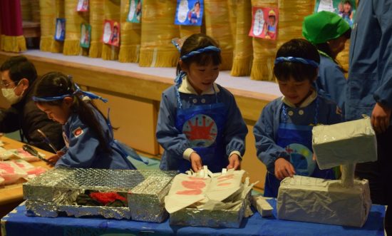 ☆絵と制作展☆ 2024年02月17日 共通 みなと幼稚園「絵と制作展」を行いました 今年度は「スーパーみなと」をテーマに各学年こどホールに「お店」づくりを行いました。クラスでは1学期から3学期までに描いた絵を展示してあります。 お店づくりでは、友だちと協力して一緒にお菓子やお惣菜、お肉屋さんや魚屋さんなど一生懸命に制作に取り組んでいました。 制作した作品を楽しみながらご家族の皆様にご覧いただくことができました。