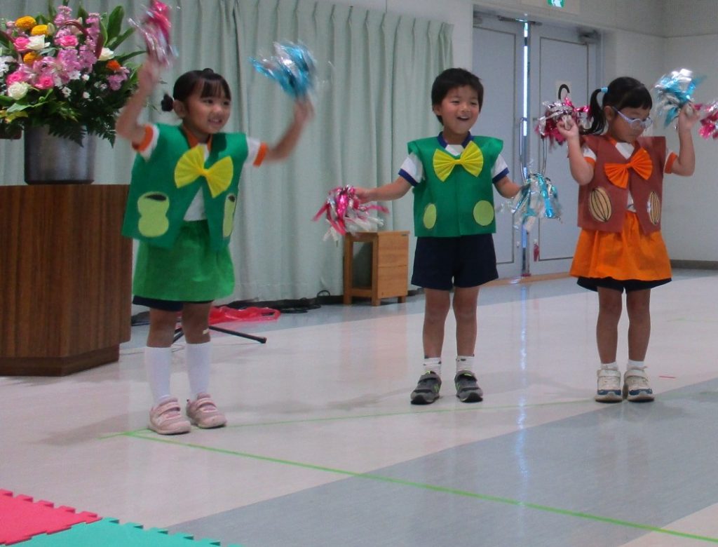 幼稚園ではなく、いつもと違うステージでの発表でしたが、みんな楽しみながら遊戯を披露してくれました❗❗😆