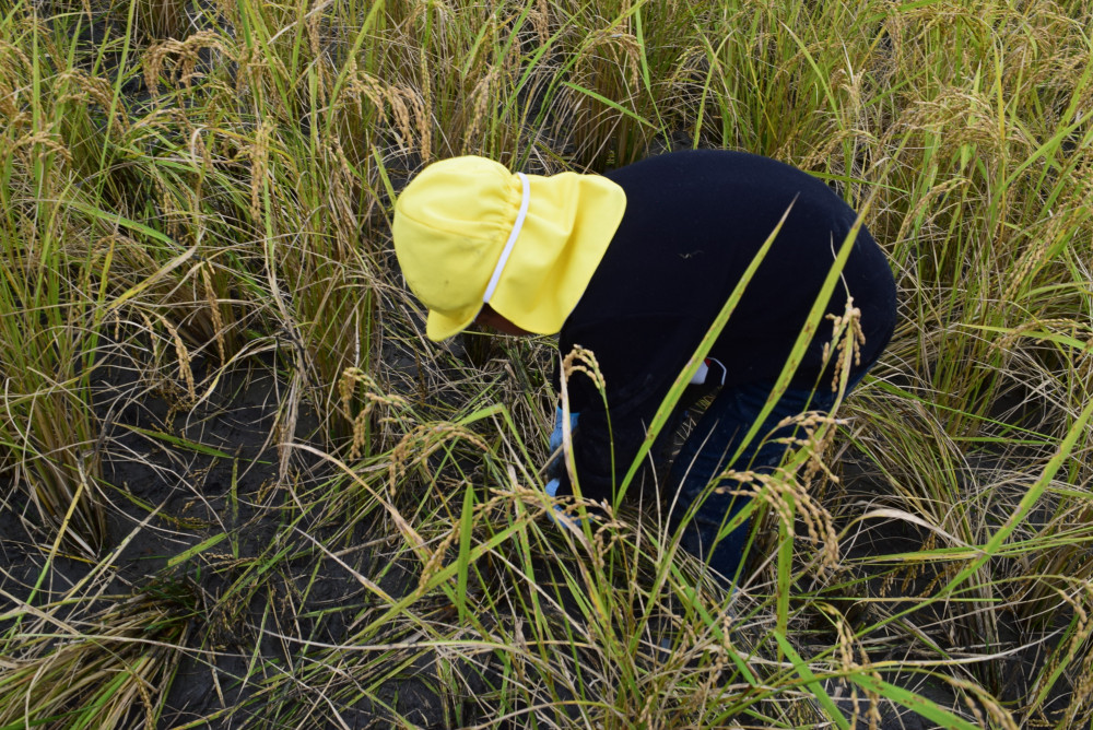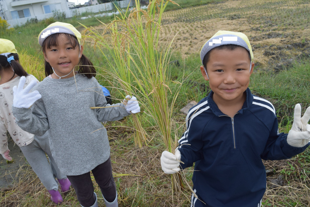 年長組のみんなが1学期に行った田植え体験で植えた稲が大きくなり、