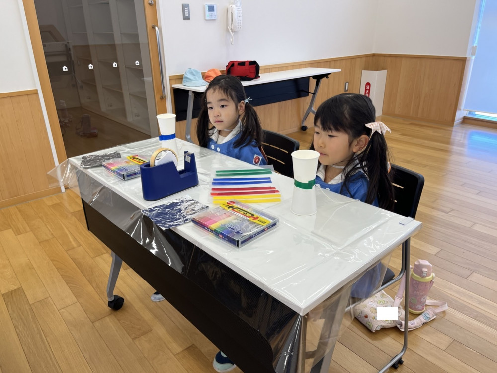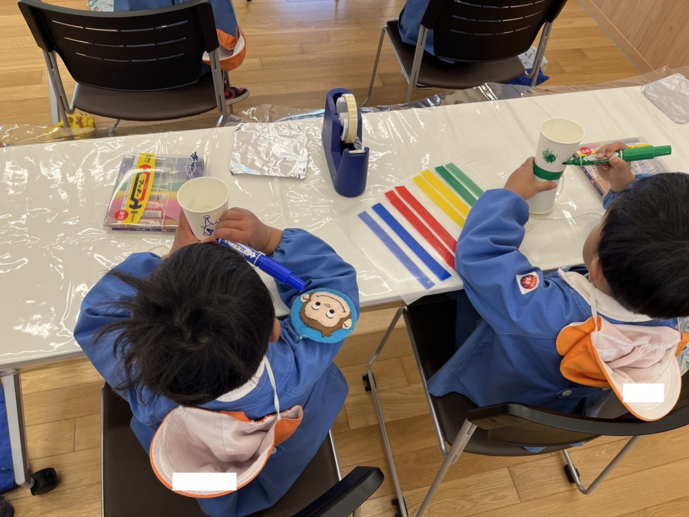 テープを貼ったり、好きな絵を描いたり、それぞれかわいいけん玉ができました❗❗