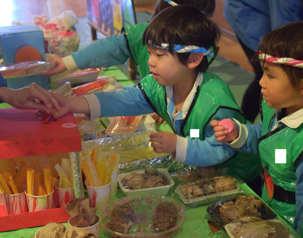 🌟お店屋さんごっこ🌟 2026年02月20日 共通 今日はみんなでホールに作った屋台でお店屋さんとお客さんに分かれて、順番にお買い物を楽しみました😁 一緒にお買い物をするグループも年長さんがお父さん、お母さんになり、年中、年少、満3歳児のみんなと一緒に回りました👍👍自分のお財布からお金を出して、紙袋いっぱいになるまで美味しそうな「クレープ」や「たこやき」などたくさん買うことができ、みんな大満足の様子でした✨😄✨